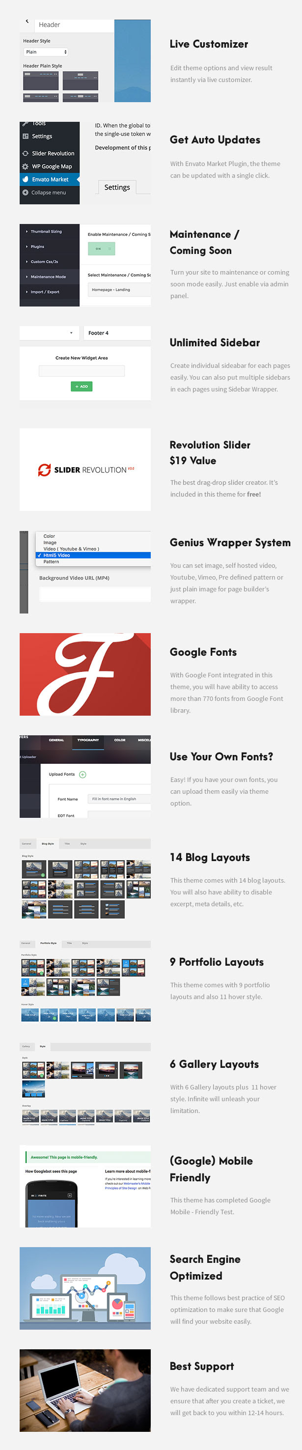 Not only well-document that you get after purchasing our theme but you will also be able to access our support website. Support part is the most important thing for us. We always try our best to serve customers and make sure they are happy with our product. Apart from theme’s quality, this is why so many customers come back for us
